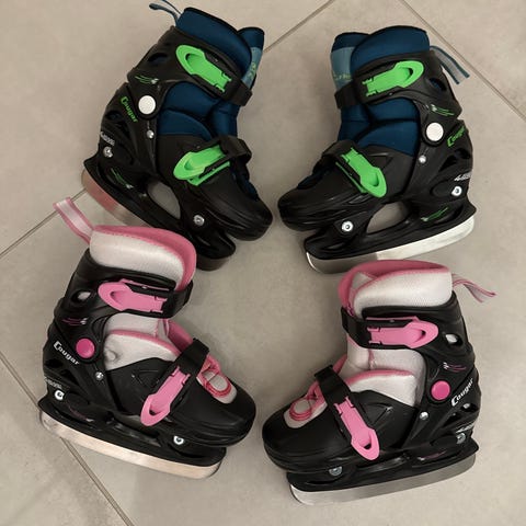 Pent brukte Cougar skøyter selges. Skøytene er justerbar i størrelsen (26-29), i svart og rosa farge. Mye bruk igjen.
