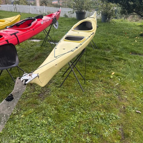 Grønnlandskajakk / rullekajakk i god stand selges. Den er ca 10 år gammel, er synlig brukt, men i god stand og med hel duk. Den har ingen skader eller slitasje av betydning, men lakken har flasset av nylonen noen steder. Dette er kun kosmetisk, men kan bety noe for noen.