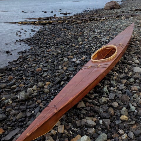 Hel og fin sjøsokk i bomullkanvas og spruttrekk i neopren følger med. For 1000 kr ekstra kan det følge med en flott grønnlandsåre laget av Anders Thygesen (Kajakkspesialisten)