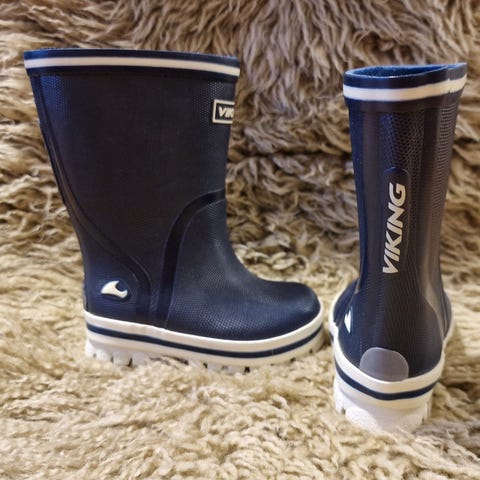 Viking barnestøvler i størrelse 19, egnet for både gutter og jenter. Støvlene er designet for å gi beskyttelse og komfort til barnets føtter.