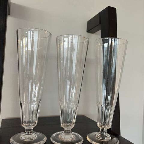 Drikkeglass til longdrinks, modell Polhøgda i tykt klart blåst glass med fasettslipning i nedre del av klokken.