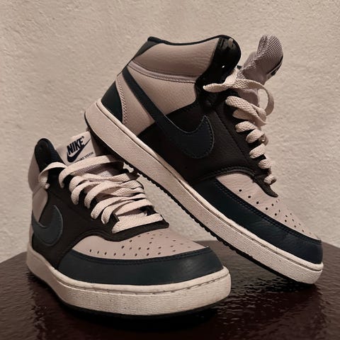 Nike løftesko i størrelse 38. Skoene er hvite med svarte detaljer og har borrelås og snøring for god passform. Designet for strykeløft (knebøy og olympisk løfting).