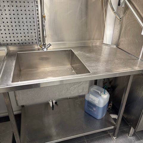 Blanco oppvaskkum med ratt for stengeventil. Standard hull (ca 30 mm) for armatur.