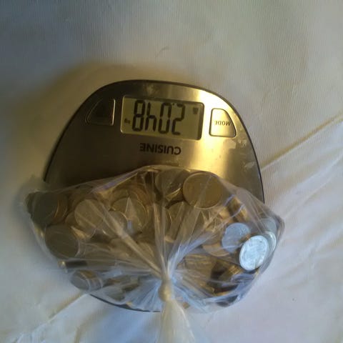 Ni kilo mynt fra mange forskjellige land, hovedsakelig i Europa.