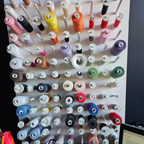 Nåler, silketråd, sytråd, skrin, knapper , gamle målebånd, trådsneller, fingerbøl og andre rariteter.