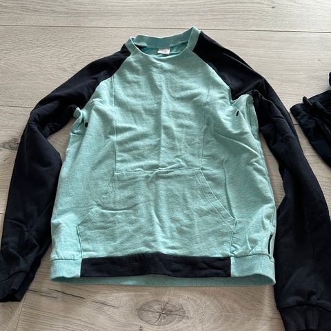 Den har ikke hel glidelås, men lomme foran som kan være praktisk
