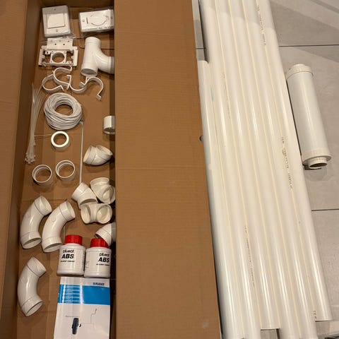Flexit slangesett On/Off Entry med en lengde på 12 meter. Inkluderer fleksibel slange og tilhørende munnstykker for tilkobling og bruk.