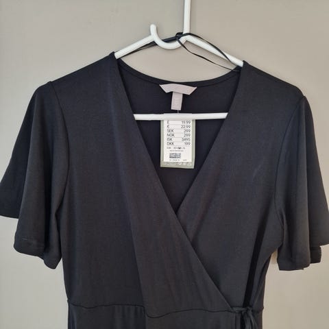 H&M hverdagskjole i størrelse M, svart farge, laget av polyester. Kjolen er designet for kvinner.
