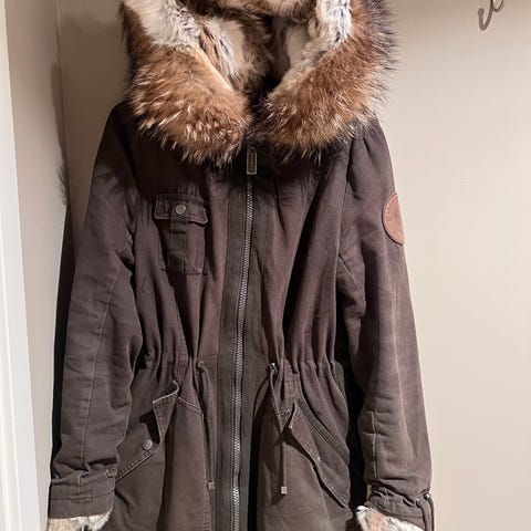 Felz Felting yttertøy dame størrelse M i brun pels. Jakken har pelsmateriale og er designet for kvinner. Egnet som yttertøy for kaldt vær.