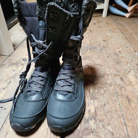 Varme og gode vinterstøvler med vendbare pigger. Kun brukt ca 1 time, men de var for høye for meg.