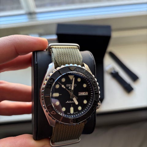 Seiko Sport 5 43mm suits style herreklokke med blå urskive og metalllenke. Klokken har mekanisk urverk og er brukt maks 3-4 ganger ved finere anledninger. Kun en eier.