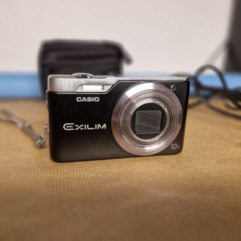Dette er en Casio EX-ZR100. Den har Stor optical zoom, og en super clear LCD.