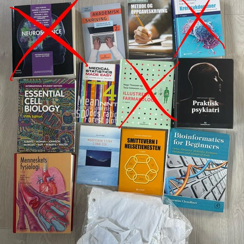 Selger bøker billig grunnet flytting. Alle brukt under bachelor i sykepleie. Si i fra hvis det ønskes kun enkelte av bøkene. Må hentes