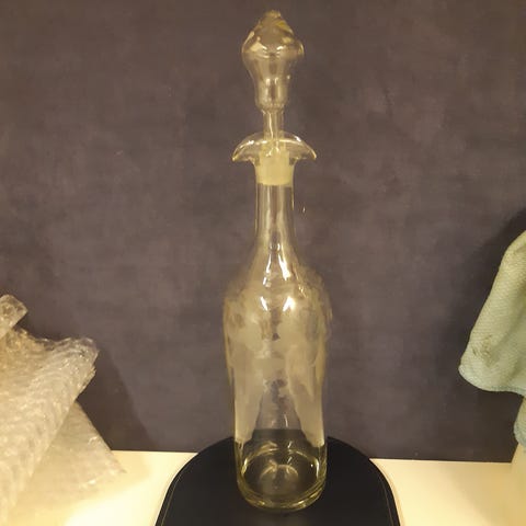 Normal aldersrelatert patina. Noen synlige overflateskraper og mindre slitasje, særlig på rygg og draperi, som vist på bildene. Ingen restaurering eller overmaling. Meget dekorativ og egnet som interiørskulptur.