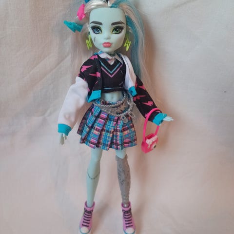 Selger en søt dukke av Sunny Madison fra Rainbow High. Kommer fra "Swim and Style" settet. Skjørtet kan brukes som topp, skjørt, håndkle++
