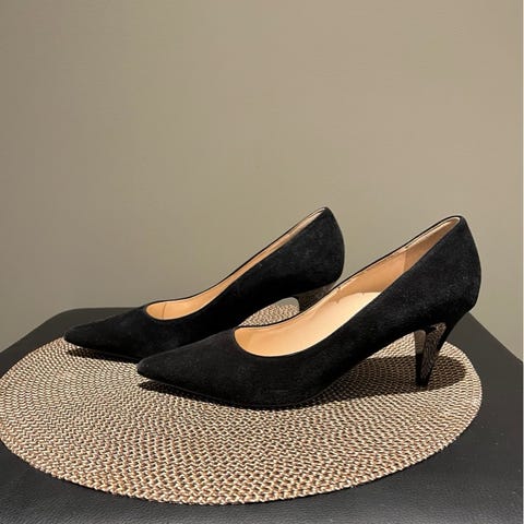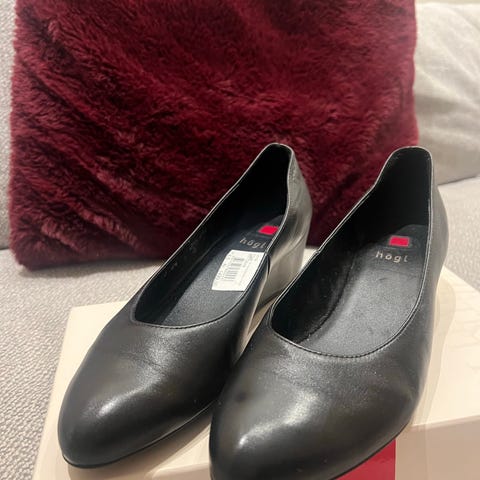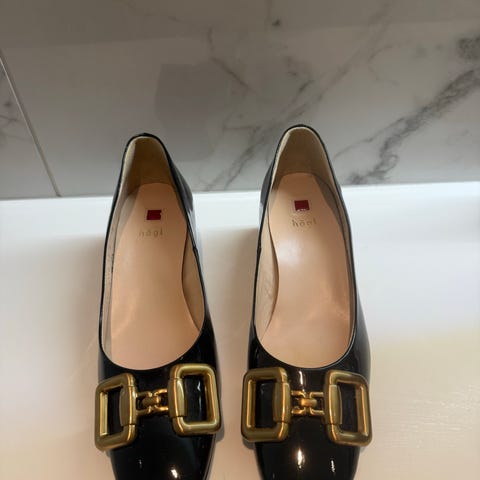Lite og pent brukt Høgl pensko, sort lakk i kombinasjon med skinn med stripemønster. Kostet 2000 kr ny