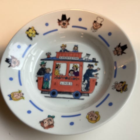 To flate og to dype tallerkener med ikonisk og nostalgisk dekor fra Figgjo Kardemommeby, til barn. Det ene settet er tilnærmet ubrukt, det andre har minimale bruksmerker. Ingen krakelering eller skår, alle fire fremstår som svært pene. Selges samlet.
