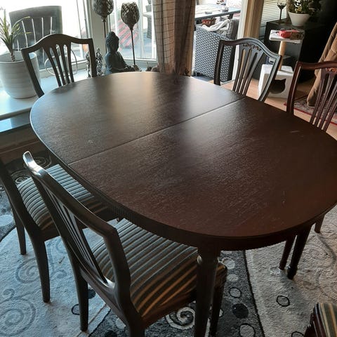 Spisestue med 8 stoler selges 1000,- / bud