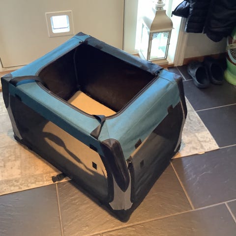 Reisebur til medium stor hund selges da vår hund aldri ble vant til bur.