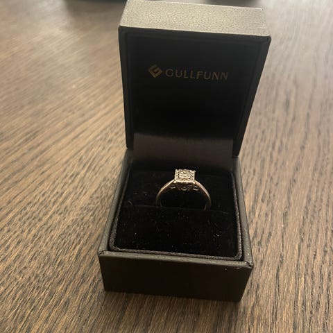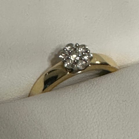 Nyrenset og godt vedlikeholdt diamantring i størrelse 54. Sertifikat medfølger