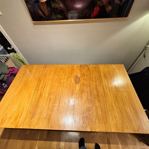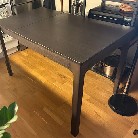 Selger et heltre bord fra Ikea. Fint stand, et par bruksmerker, kan utvides til å bli 128cm eller 166cm. Ta gjerne kontakt ved interesse. Pris kan diskuteres.