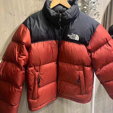 Pent brukt The North Face jakke i blå farge, størrelse M for herre. Laget av dunmateriale. Varm og trendy