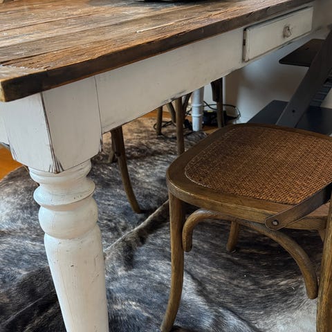 Valencia spisebord med 10 stoler. Bildene i annonsen viser bordet med en lem og fire stoler. Det medfølger ytterligere 2 lemmer og 6 stoler.