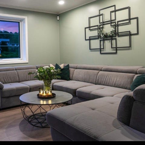 Stor og fin u-sofa selges. Kjøpt på Skeidar eller Bohus. Trenger en vask, men ellers fin. Trekk på rygg puter kan tas av. Må hentes.