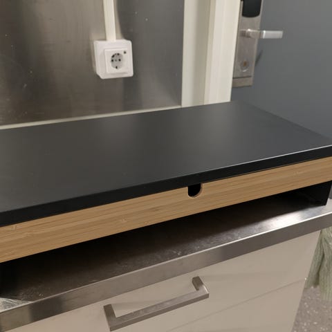 Selger dette praktiske skjermbordet som hever skjerm/display, og som har praktisk skuff for oppbevaring av det mest brukte på skrivebordet. Det er noen små merker på det, se bilde 2.
