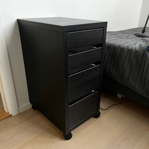 Nypris hos IKEA 299, les mer her: https://www.ikea.com/no/no/p/elloven-skjermbord-med-skuff-hvit-50474770/
