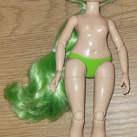 Dukken er komplett og i fin stand. Eneste er at han har en svak flekk på t-skjorten, men mulig den går vekk i vask (har ikke prøvd).