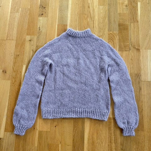 Novice genser (Petiteknit) strikket i drops Lima sammen med en svart glittertråd. Passer fint til å ha over kjoler, med ballongermer og kort fasong som dtopper redd under bysten/i midjen avhengig av lengde på bruker.