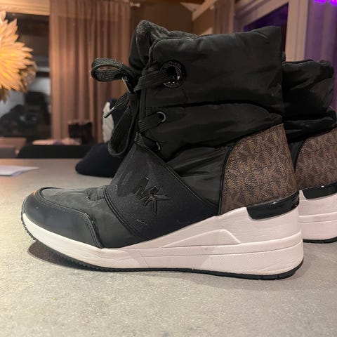 Hvite snow boots.