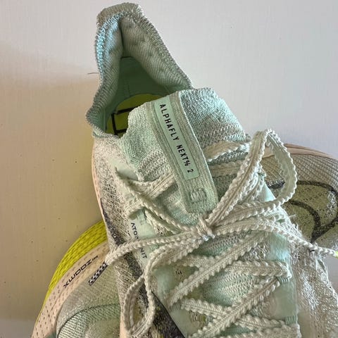 Selger mine Nike Air Zoom Alphafly Next% 2 "Black Sea Coral" løpesko i str 38.5 . Har løpt med de ca 150 km og de er i god stand. De er kjøpt på Löplabbet i 2023