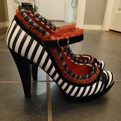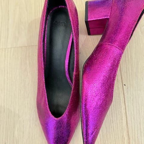 Hæl: Kilehæl (wedge), som gjør dem mye mer behagelige å gå med enn tynne stiletter ✨.