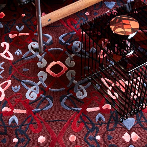 Håndtuftet designteppe i New Zealand-ull og viskose.