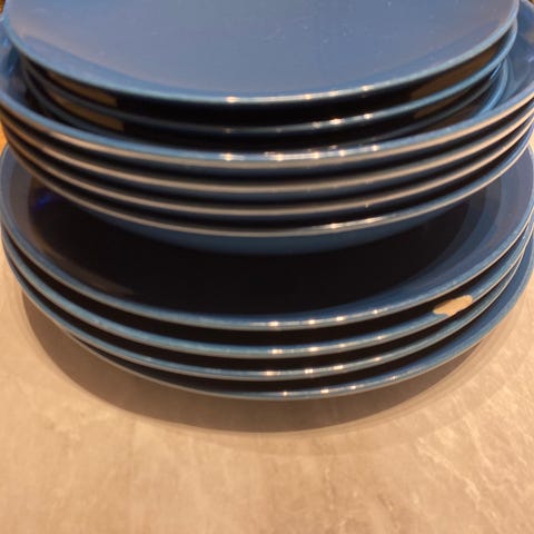 IKEA tallerkensett i svart keramikk bestående av flere flate og dype tallerkener i ulike størrelser. Settet inkluderer 6 stk små tallerkener, skåler og store tallerkener egnet for ulike måltider og anledninger. Settet er lite brukt.