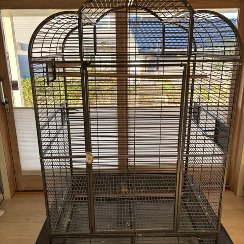 Bur til små fugler med metallgitter og plastbunn. Inkluderer flere leker og tilbehør som huske, klatrestativ og matskåler. Egnet for små fugler som kan bruke bur til innendørs opphold.