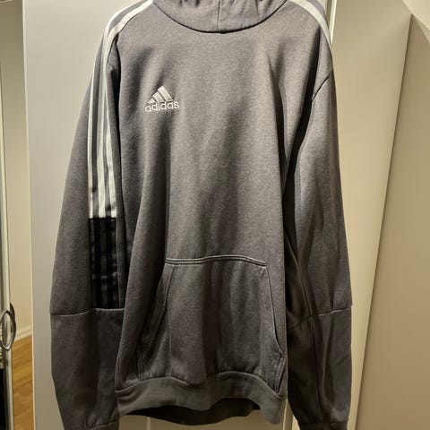 Grå fin adidas hettegenser. Kun brukt 1-2 ganger pga feil størrelse, ingem flekker. Som ny. Str. 176 ( tilsvarer XS)