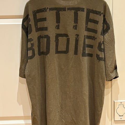 Legacy-genseren fra Better Bodies har en løs passform og har overdimensjonert rund hals med åksøm bak for bedre passform, samt rå kanter nederst og på ermeribbene. I tillegg er den utstyrt med denne rundhalsen med senkede skuldre og en V-formet passform for å unngå at materialet buler ut rundt midjen. Stoffet har litt tyngde, og utsiden føles glatt, mens innsiden er ubørstet. Et stort Legacy-trykk utvider seg over skuldrene, og det er også lagt til et lite brysttrykk.