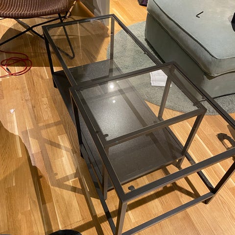 Sofabord fiskebein med sort metallramme