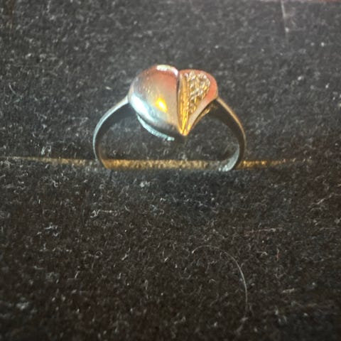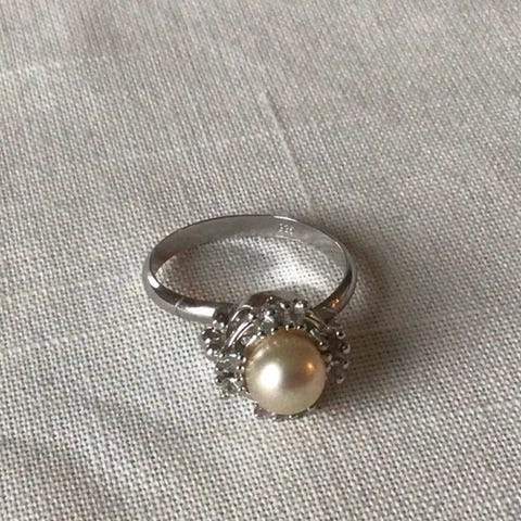 Sølv ring for dame, laget av sølv. Ringen har en detaljert design med innlagte steiner og er stemplet med 925 for sølvinnhold.