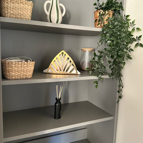 Et hull i bakplaten i ett av skapene. Noen hull i sidevegger der skapene har vært festet sammen.