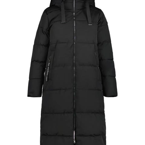 Luhta damejakke i beige farge, størrelse 40. Jakken har hette med pelskant og flere lommer. Den er designet for kvinner og egnet for kaldt vær.