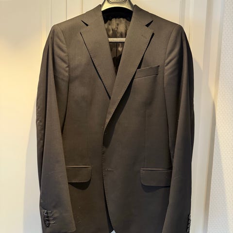 Selger en elegant og klassisk Bertoni dressjakke/blazer i mørk base med diskrete lyseblå pinstripes. Dette er en tidløs “business”-jakke som sitter pent både kneppet og åpen, og som fungerer like godt til dressbukse som til chinos/jeans.