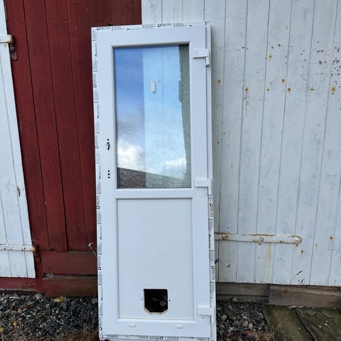 Dør med karm og sokkel er 80x200cm