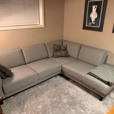Vi kjøpte den på FINN i april i fjor (til 12.000 kr) når vi leitet etter en god kvalitet sovesofa til når mine eldre svigerforeldre er på besøk. Grunnen til salget er at madrassen dessverre er litt for myk for min 84 år gamle svigermor, som trenger fastere underlag.