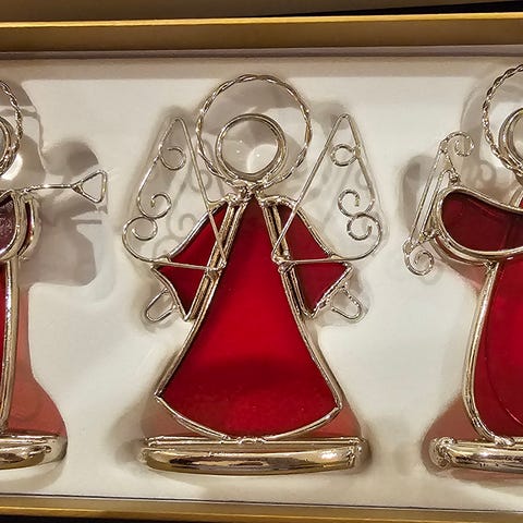 Flott sett med engler i Tiffanystil fra Hadeland Glassverk. Jeg tror aldri englene har stått fremme, så de fortjener ett nytt hjem hvor de vil bli bedre verdsatt.