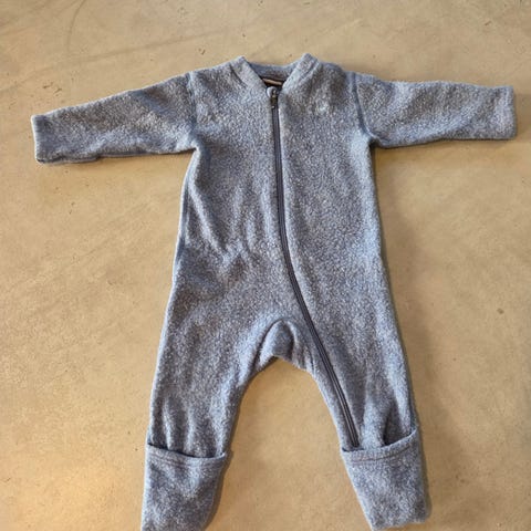 Pent brukt ulldress i mørk grønn fra Cubus. Overbrett på både ermen og ben, glidelåsen går helt ned til foten. Mest brukt til soving i vogn. God i størrelsen!
