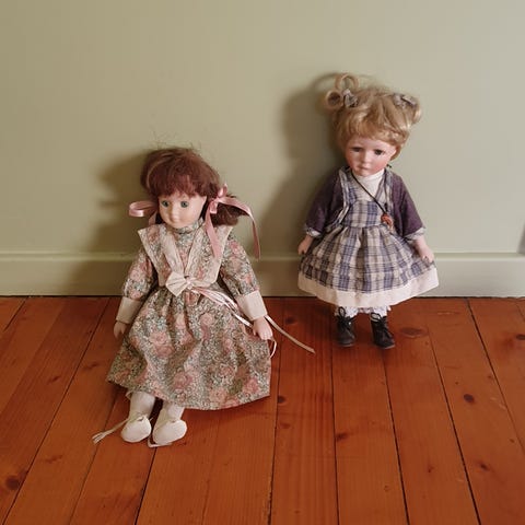To søte pyntedukker ca 32 cm. Selges samlet.
